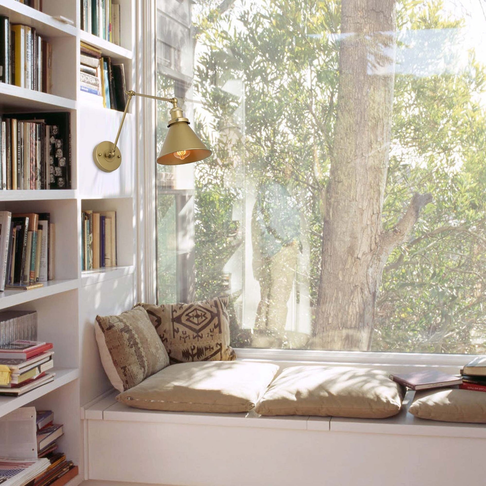 Elevate your home with the vintage elegance of this Set of 2 Modern Farmhouse Plug-in Gold Swing Arm Wall Sconces. Featuring a matte gold finish and conical-shaped shades, these sconces exude classic charm, perfect for enhancing any entryway, dining room, or living space. The adjustable arm allows you to direct light precisely where needed, while the dual installation option (hardwired or plug-in) offers flexibility to suit your preferences. Crafted from durable metal with a brushed gold finish, this sconce set adds a touch of sophistication to any room.