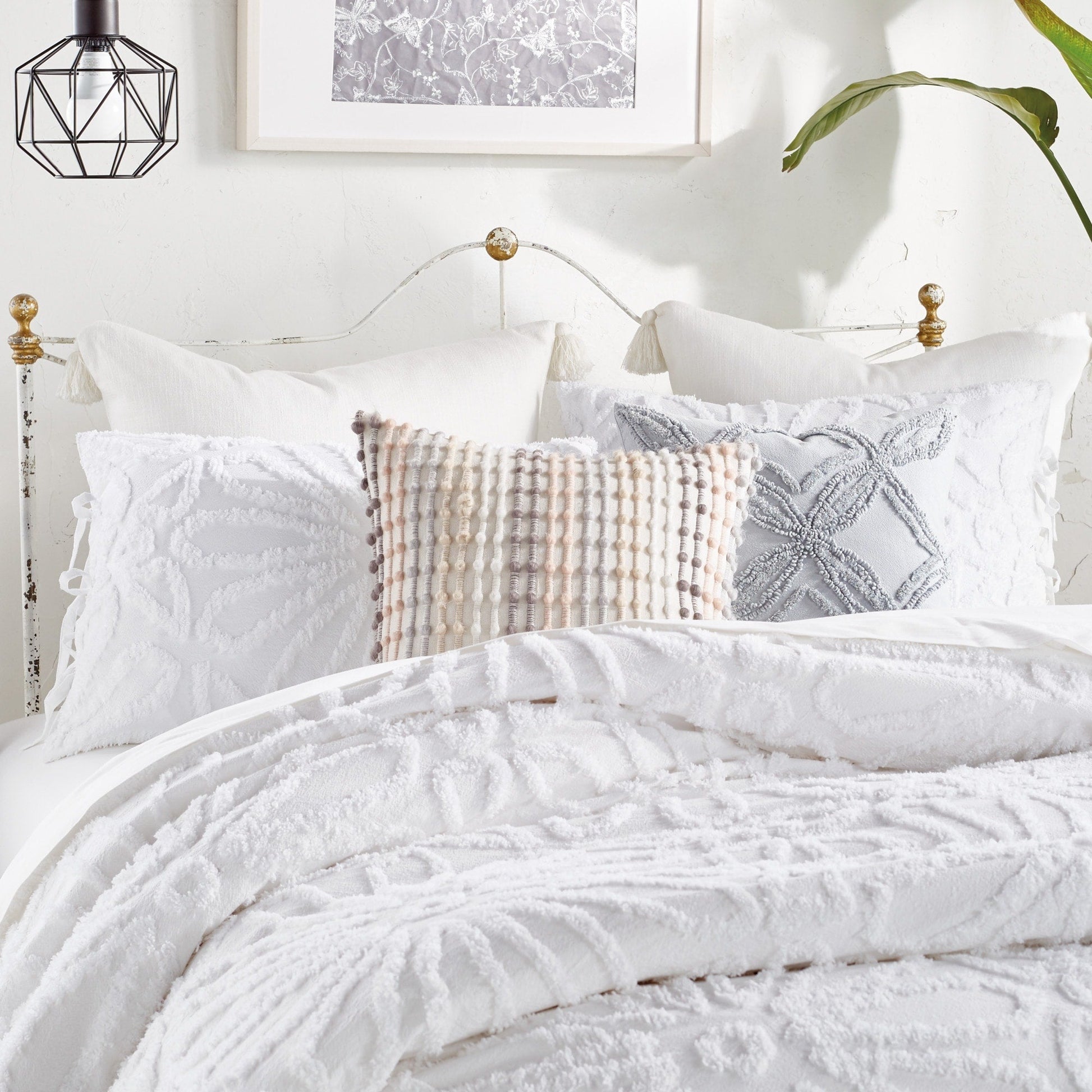 Refreshing your space just got easier with the Peri Home Chenille Medallion bedding in white or navy. With intricate chenille tufted details this 100% cotton comforter set will charm you with its subtle medallion pattern. Playful ribbons on the sham add the final touch to send you into sweet dreams.