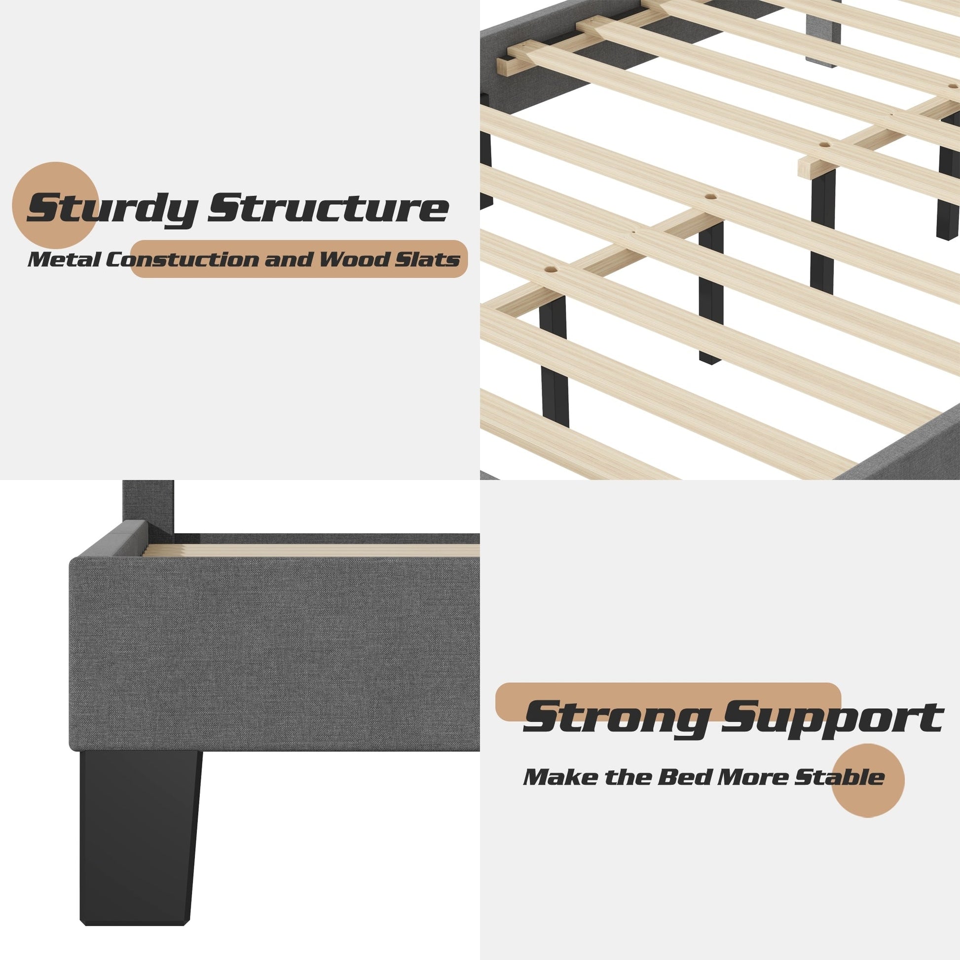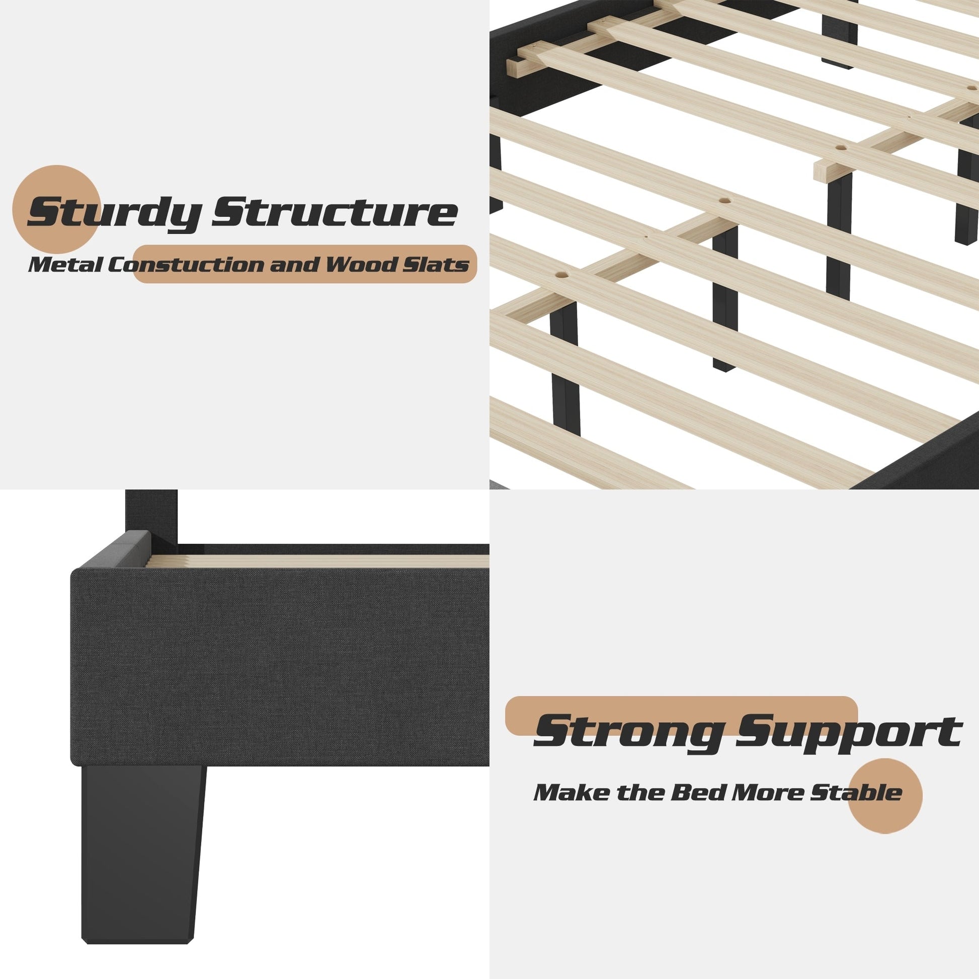 • Sturdy Structure:  Frame is made of high-quality metal and wood, sturdy and durable.