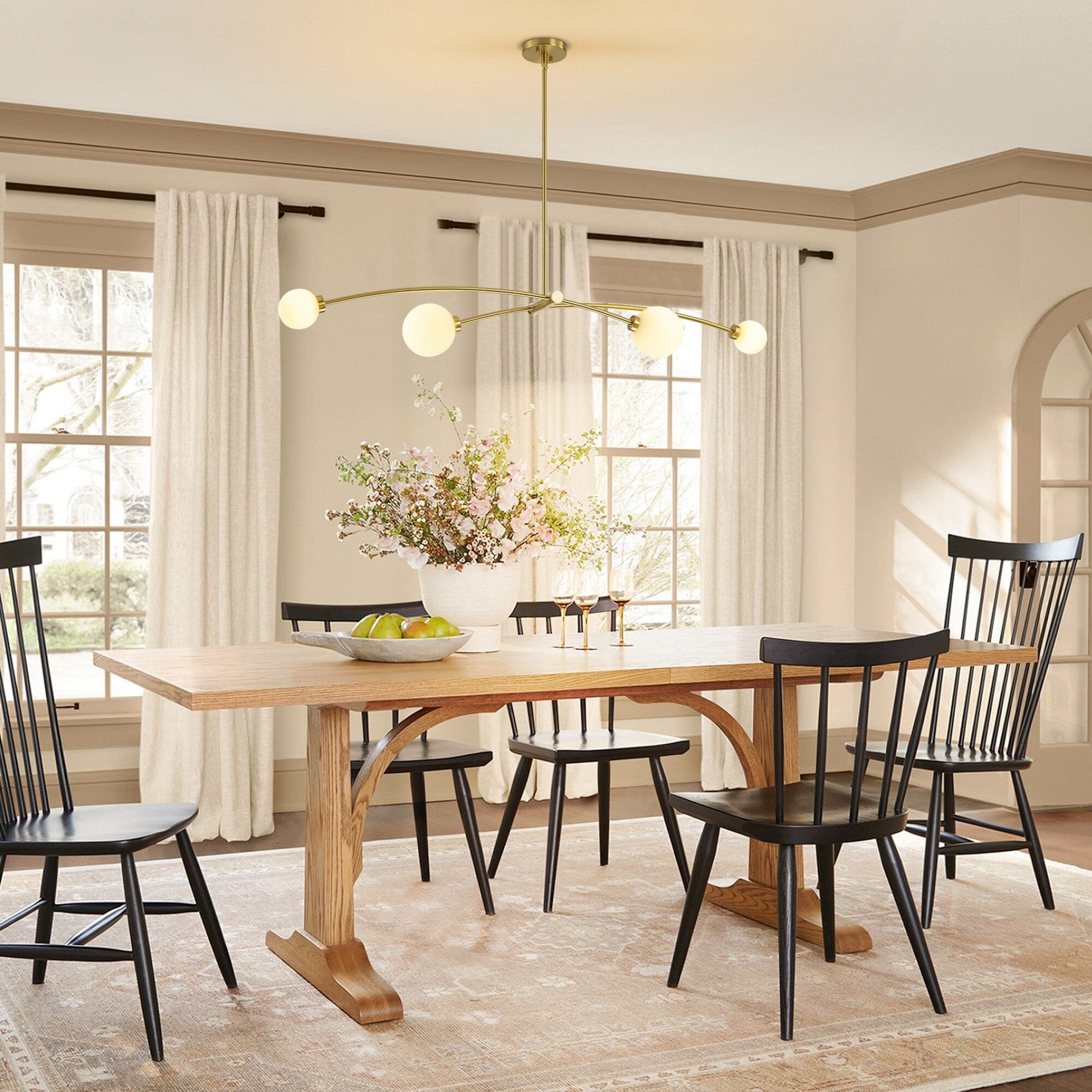 • Minimalist Sputnik Design: With its gently curved frame and four frosted glass globes, this chandelier brings a sophisticated yet understated charm to your space.