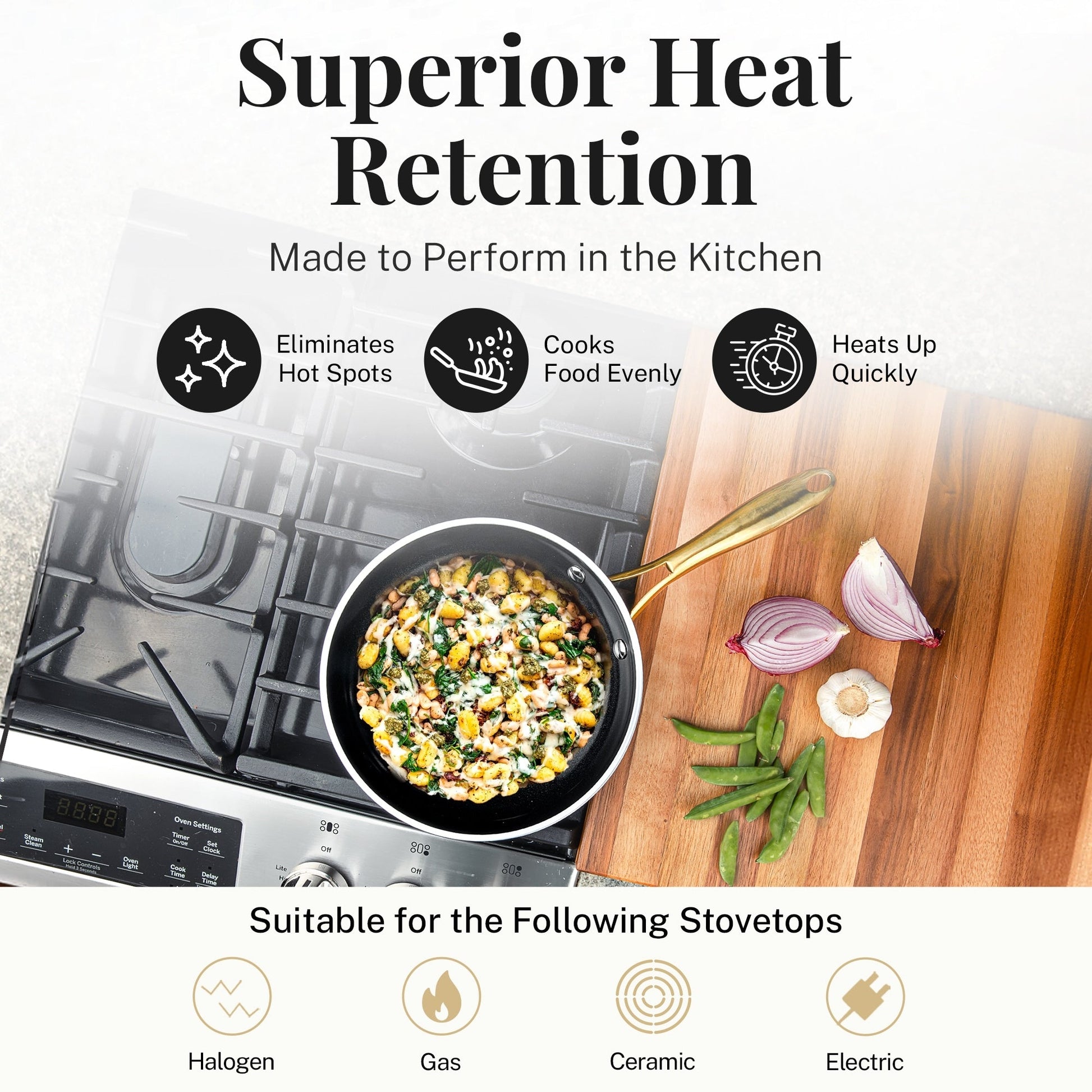 • Oven and Stovetop Versatility: Safe for use on gas, electric, ceramic, and halogen stovetops, and oven safe up to 500°F, allowing flexibility for stovetop-to-oven cooking.