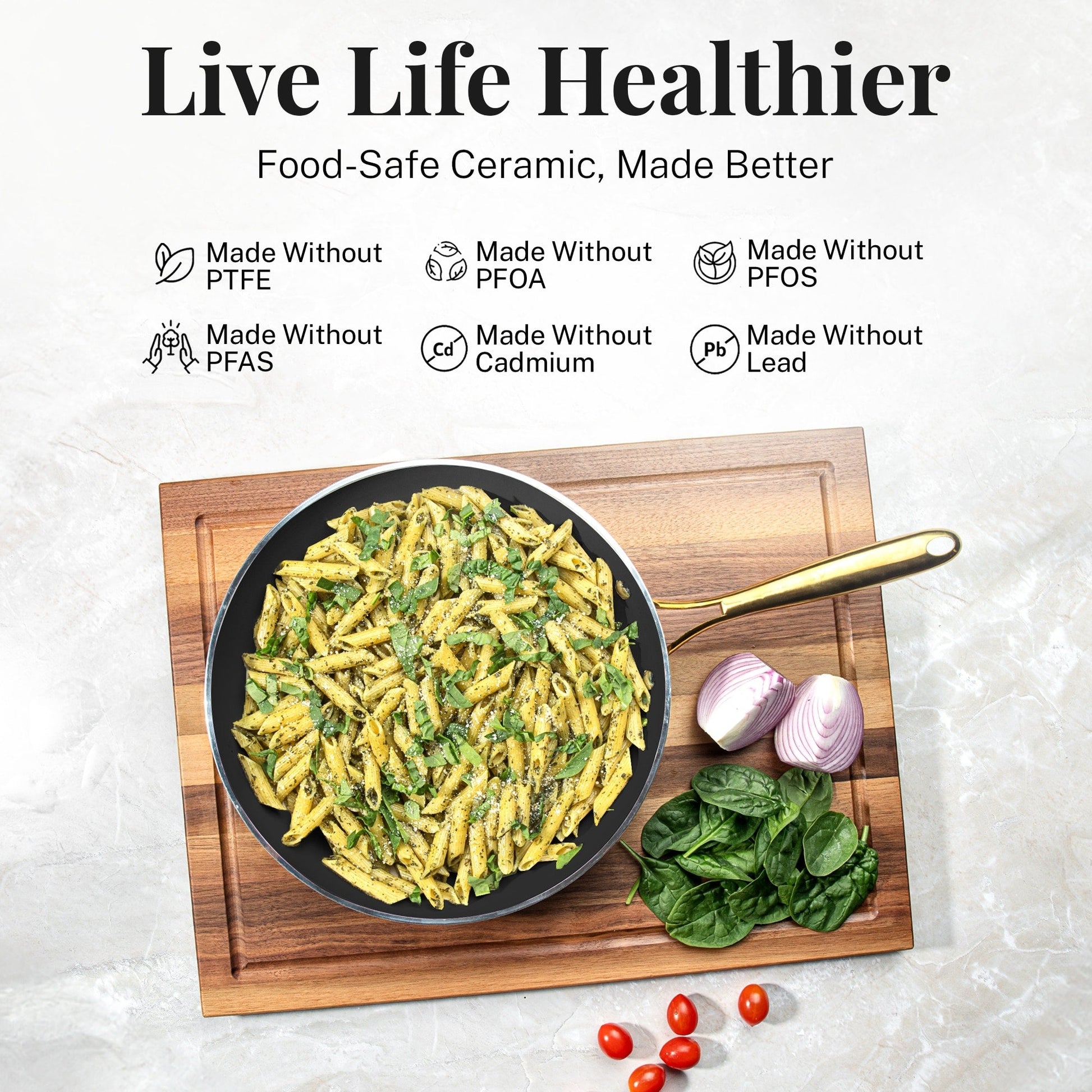 • Safe and Non-Toxic: Made without PTFE, PFOA, PFOS, PFAS, lead, and cadmium, this cookware set promotes healthier cooking for you and your family, making it an eco-friendly and safe choice.