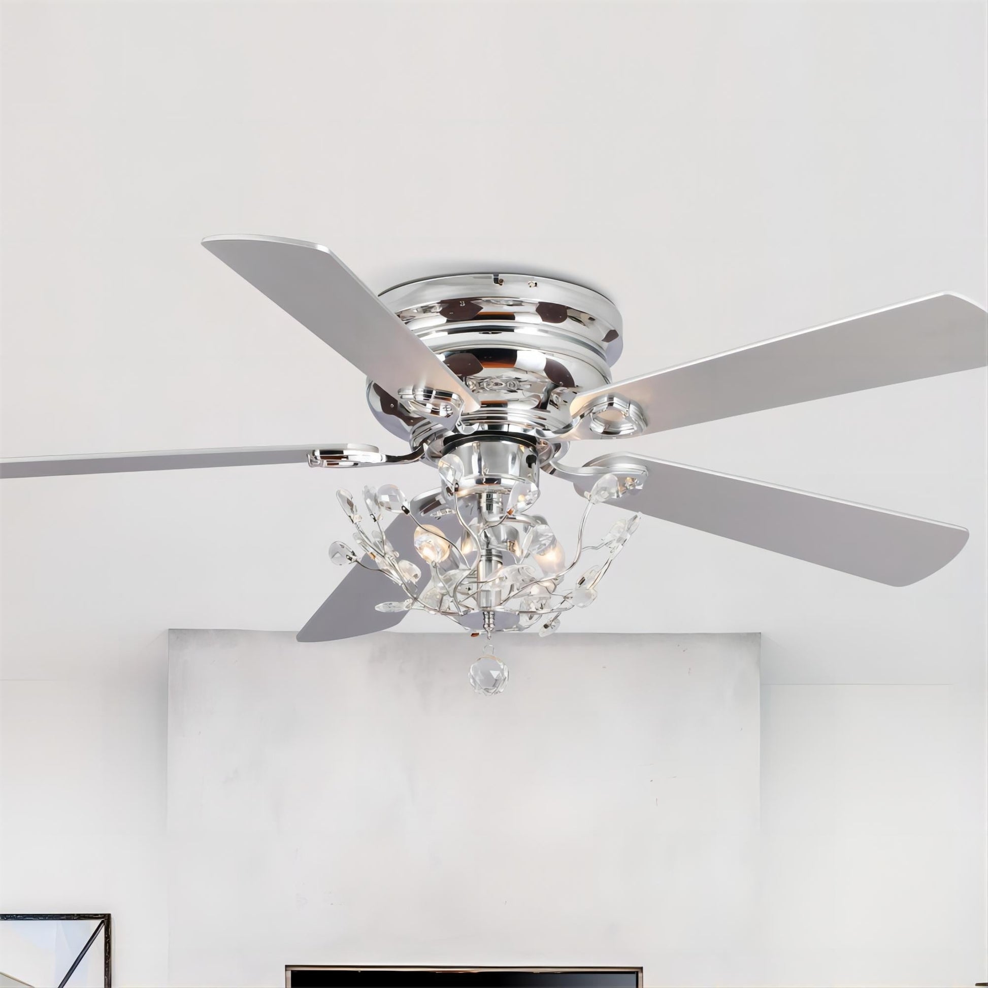 • Modern-style crystal lower-profile fandelier ceiling fan
